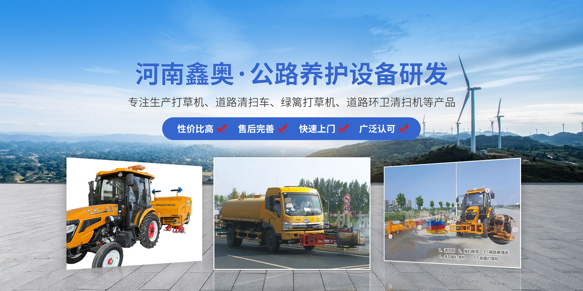 河南鑫奧機(jī)械制造有限公司位于“森林城市”京廣鐵路大動(dòng)脈貫穿而過的新鄉(xiāng)。是一家生產(chǎn)打草機(jī)、道路清掃車、綠籬打草機(jī)、道路環(huán)衛(wèi)清掃機(jī)等產(chǎn)品的公司,集研發(fā)、制造、營(yíng)銷及技術(shù)服務(wù)為一體的新技術(shù)企業(yè)。自2000年開始從事公路養(yǎng)護(hù)設(shè)備的研制開發(fā)與生產(chǎn)。于2007年通過資產(chǎn)組合成立了河南鑫奧機(jī)械制造有限公司。  我公司近年來堅(jiān)持“鑫奧機(jī)械,源于公路”的理念,針對(duì)公路建設(shè)養(yǎng)護(hù)所需,我們的科技團(tuán)隊(duì)先后研制了道路環(huán)......